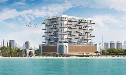 The architecture of this development encompasses contemporary coastal elegance, with transparent floor-to-ceiling glazing that allows natural light and panoramic views of the Arabian Gulf complemented with an extensive range of in-development and family-centric amenities for leisure and lifestyle living.